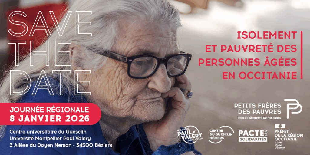 Madame, Monsieur, Dans le cadre du Pacte des solidarités Occitanie, les Petits Frères des Pauvres ont le plaisir de vous inviter à une journée régionale dédiée à l’isolement et à la pauvreté des personnes âgées en Occitanie, organisée en partenariat avec l’Université Montpellier Paul Valéry et plusieurs acteurs engagés du territoire. Jeudi 8 janvier 2026 – 8h45 à […]