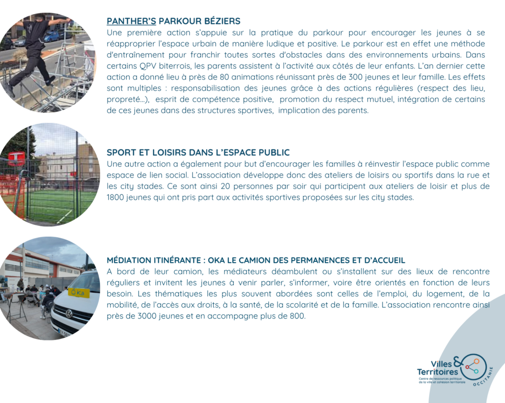 Le contrat de ville de l’agglomération Béziers Méditerranée finance diverses actions qui ont pour objectif d’occuper l’espace public afin de créer du lien avec les jeunes. Voici trois exemples d’actions financées par le contrat de ville en 2024.