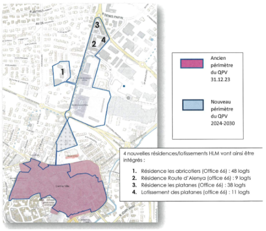 Le quartier prioritaire englobe l’intégralité de la ville basse et une partie de la ville haute. Son périmètre à été élargie de manière à prendre en compte une zone de résidences HLM dont les habitants sont exposés à des vulnérabilités qui peuvent induire un décrochage social. L’enjeu de cette extension sera “de conduire des actions en faveur de la mixité sociale au sein des politique d’attribution du logement social au sein du quartier prioritaire”.