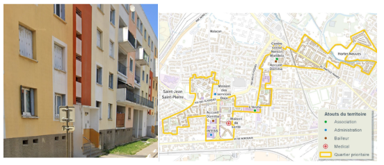 Ses atouts – Un quartier à taille humaine, qui a bénéficié de la réhabilitation et de la rénovation de certains de ses bâtiments. Le quartier est doté de nombreux équipements et services (maison de proximité, espace de formation/insertion/emploi, mairie, ludothèque, RPE, MSP,) et d’un tissu associatif dynamique.